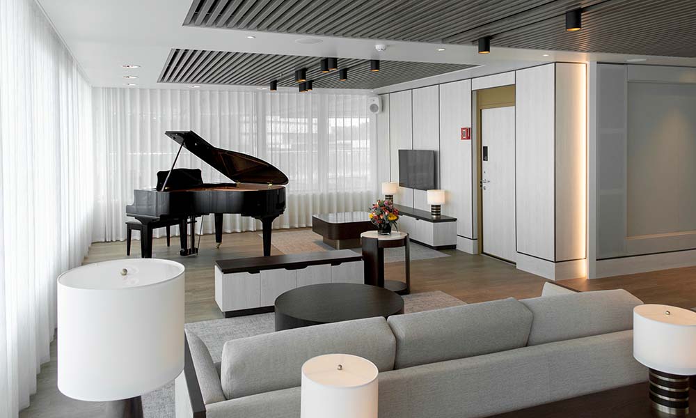 Public Areas – Among the lounges ideal for relaxation after a day of touring the islands is the Explorer’s Lounge with books, a piano, floor-to-ceiling windows, and comfortable seating. Here talks about the islands are presented and it is the spot for music and a cocktail before dinner. This lounge has a terrace with a fire pit and a circular sofa for relaxation in the evenings. Another spot destined to be popular with guests is the Observation Lounge, located forward, with walls of windows offering 180-degree vistas of the sea and the islands.